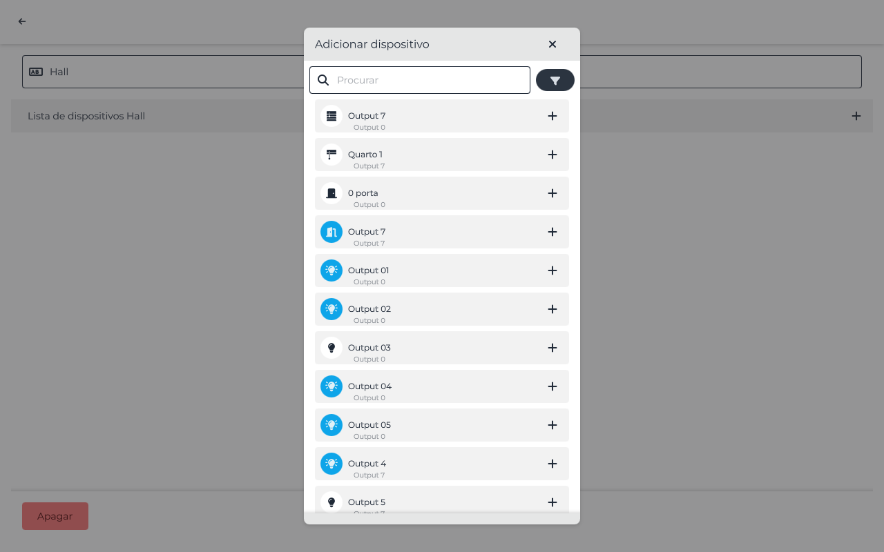 Para adicionar um dispositivo a uma divisão, basta clicar no botão e escolher o dispositivo desejado.