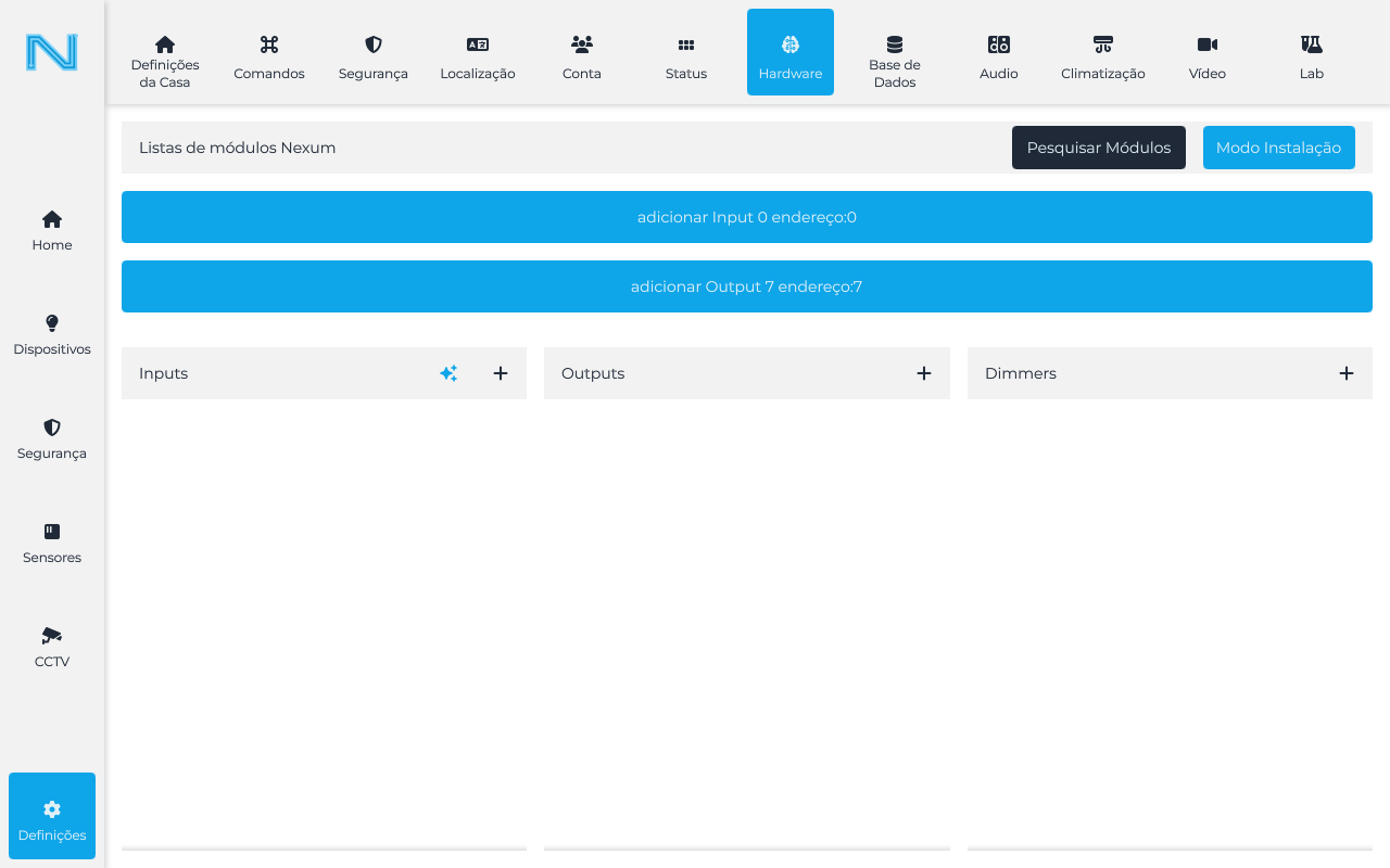 Contém os módulos Nexum, responsáveis pela automação dos circuitos elétricos. Este quadro recebe as fases provenientes do quadro elétrico e distribui-as para: